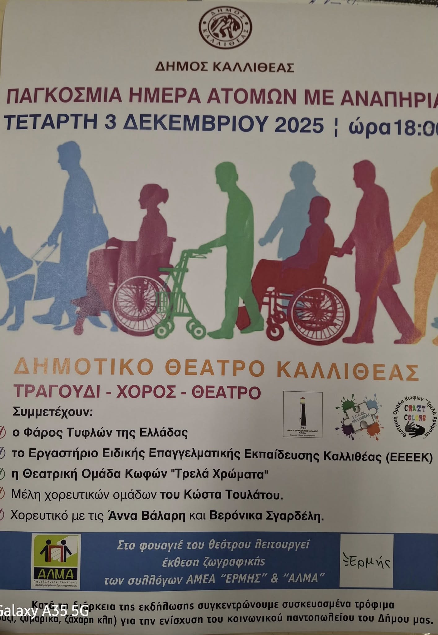 Το ΕΕΕΕΚ Καλλιθέας θα συμμετάσχει στην εκδήλωση για την Παγκόσμια Ημέρα Ατόμων με Αναπηρία, 👩🦽🧑🦯👩🦯👩🦯👩🦼🧍🧍♀️την Τετάρτη 3 Δεκεμβρίου 2025 στο #ΔημοτικόΘέατροΚαλλιθέας🏛